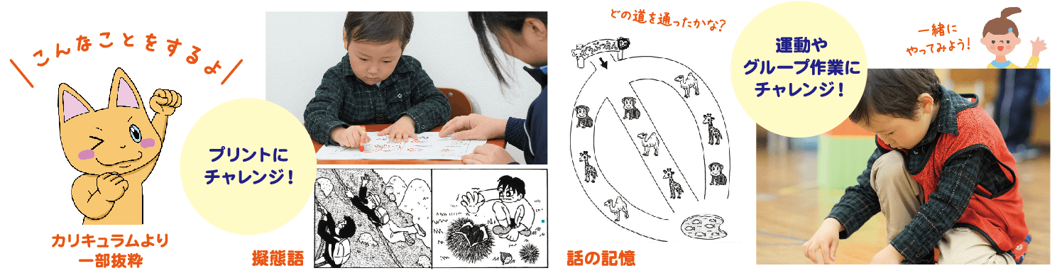 - 過去の入試問題(2022~2025年度)の中から、約40年の鷗州塾データを元にオリジナル類題に挑戦します。また、非参観授業のため本番と同様の環境で取り組み、その様子も評価します。プリント・発表特訓コース(ペーパー問題・発表・巧緻性等)と、行動観察特訓コース(躾・模倣も含む運動・グループ作業等)の2コースを準備しています。2つのコースを併用して受講されることで、小学校入試で頻出の内容を幅広く経験できます。