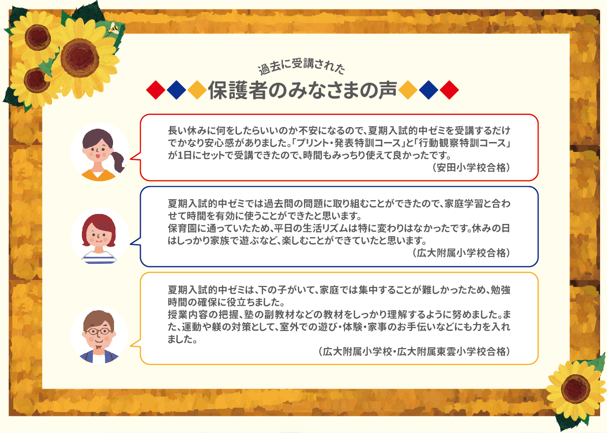 - 夏だけの特別講座[年長]夏期入試的中ゼミ