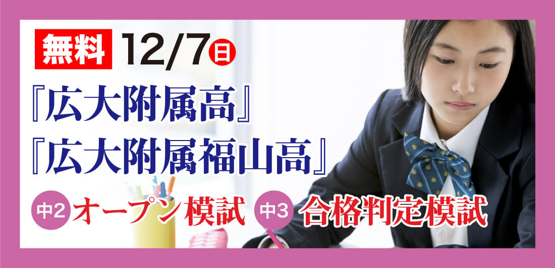 12/7(日)に中2生・中3生対象の『広大附属高校』『広大附属福山高校』模試(無料)を実施いたします!