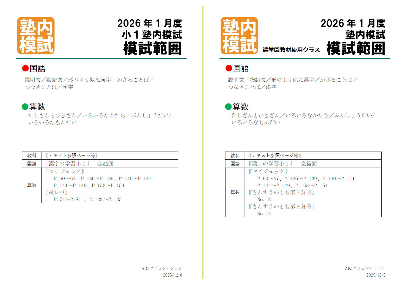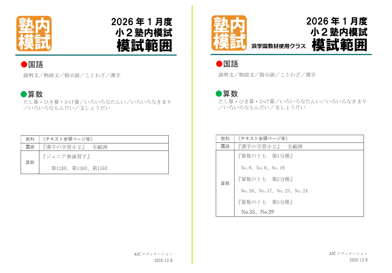 2026/1/11(日)●今回が2025年度内最後の模試です。