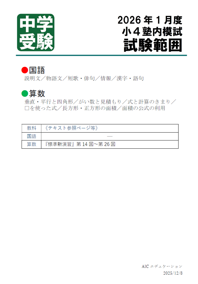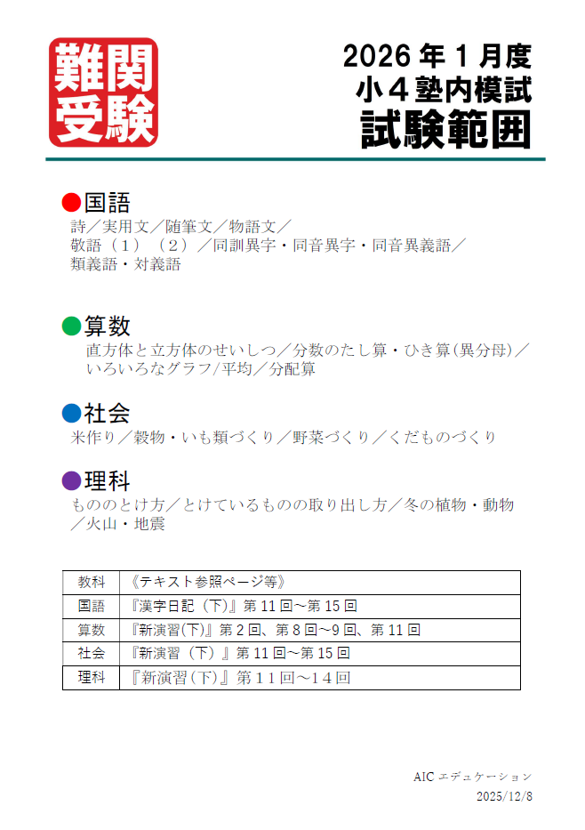 ●小4模試範囲(上表の模試名横に☆がついているもの)はこちら