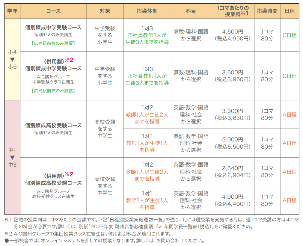 ※校舎によって、設置クラス・講座が異なります。各校舎の設置クラス・講座は、別紙時間割をご確認ください。