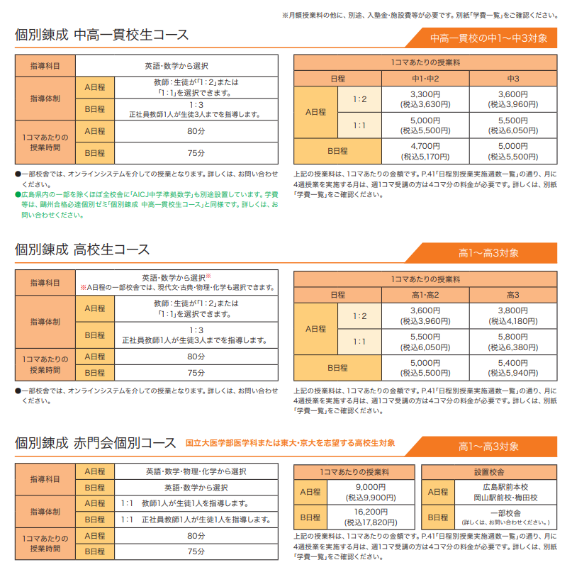 ※上記個別フォロー時間は、学年・クラス・校舎によって名称・時間等が異なります。