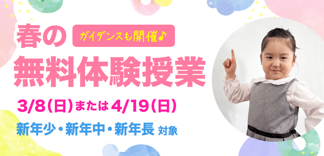 【幼児部】春の無料体験授業のご案内🎵(ガイダンスも同日開催)