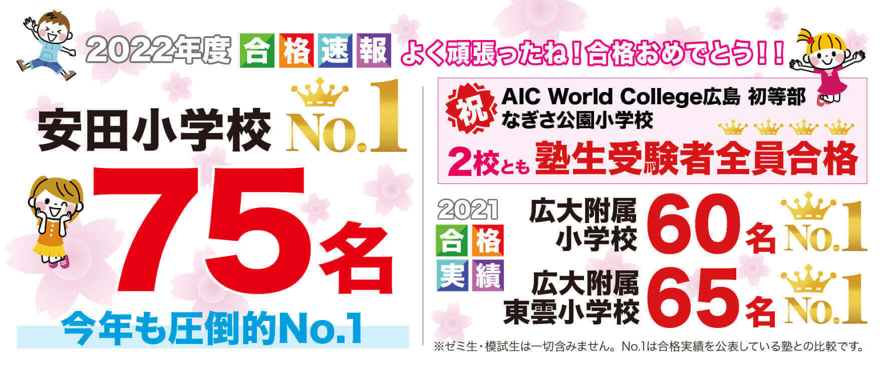 なぎさ公園小学校・AIC World College広島初等部・広大附属三原小学校 塾生受験者全員合格