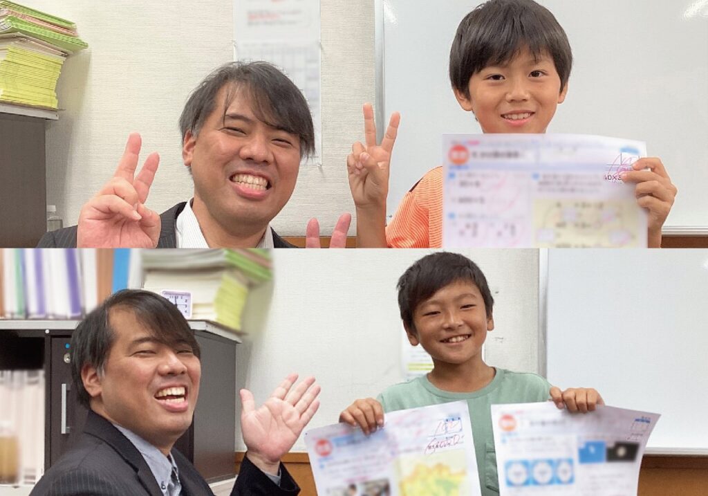 小学生「学力定着Gクラス」の生徒さん、よく頑張っています!テスト100点!おめでとう!