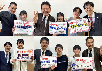 小学生の集団クラスでは、小学校準拠用と中学受験用から選べ、目的に応じて学習いただけます!小学校準拠クラスでは、学校内容の定着を図る「学力定着Gクラス」、中学受験クラスでは、県外難関中を目指す「難関国立・私立中学受験SSクラス」、県内中学の上位合格を目指す「受験SNクラス」、県立中学の適性対策を徹底して行う「岡山県立中学受験SAクラス」など、多数クラスを設置しております!岡山駅前校から毎年、県立操山中・大安寺中・岡大附属中・広大附属福山中・岡山白陵中・就実中に多数の合格者が出ています!