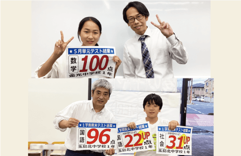 【中学生】学校の進度に合わせて授業展開するクラスを設置しており、定期テスト直前の日曜日には「定期テスト勉強会」を実施し、個々の質問対応や勉強のやり方指導など、点数を上げるための対策は万全です。