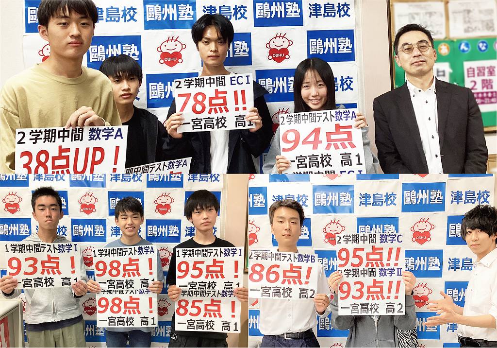 津島小学校・伊島小学校・横井小学校・京山中学校・香和中学校・中山中学校の生徒だけでなく、一宮高校をはじめ高校生や中高一貫校の中学生も通塾中です!