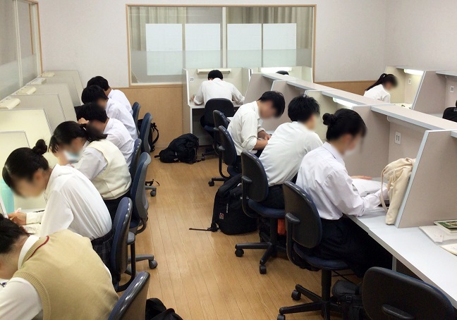 高校生専用の無料自習室を完備しています。月~土は21:30まで、塾生は何度でも自由に使用できます。