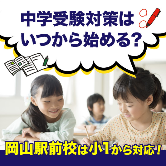 また、岡山県内で人気の岡山大安寺中等教育学校・岡山操山中学校・倉敷天城中学校は「適性検査型入試」のため、それぞれの科目の知識だけではなく、その知識を使った記述力・表現力・伝達力・情報分析能力もあわせて身につけることが必要です。