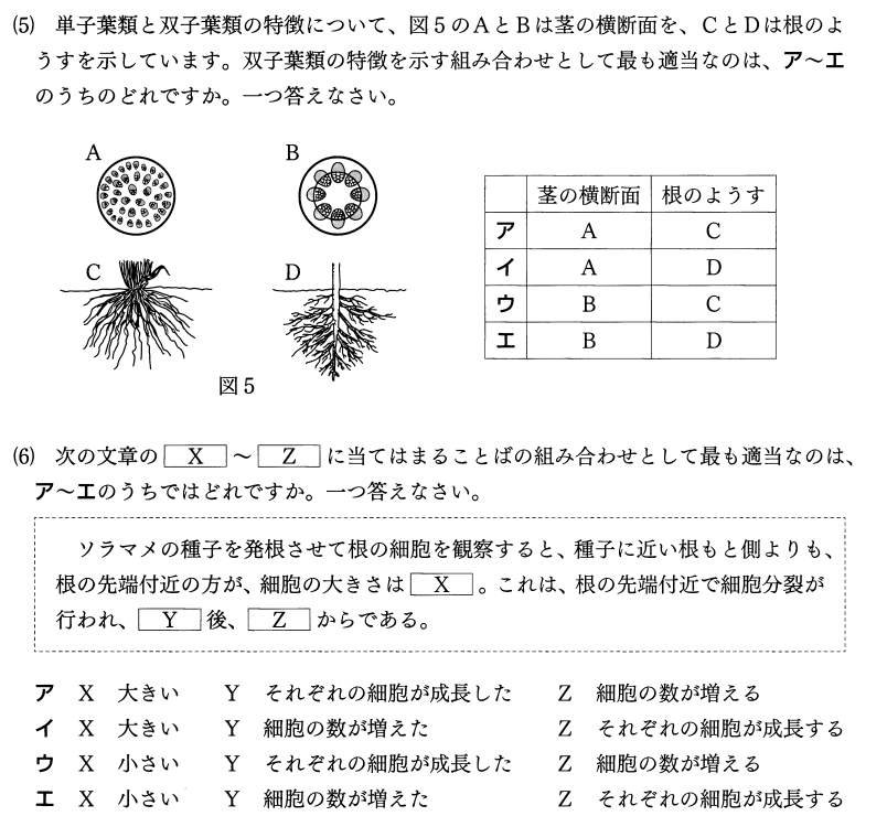 岡山県公立高校入試(理科) 大問1(5)(6)