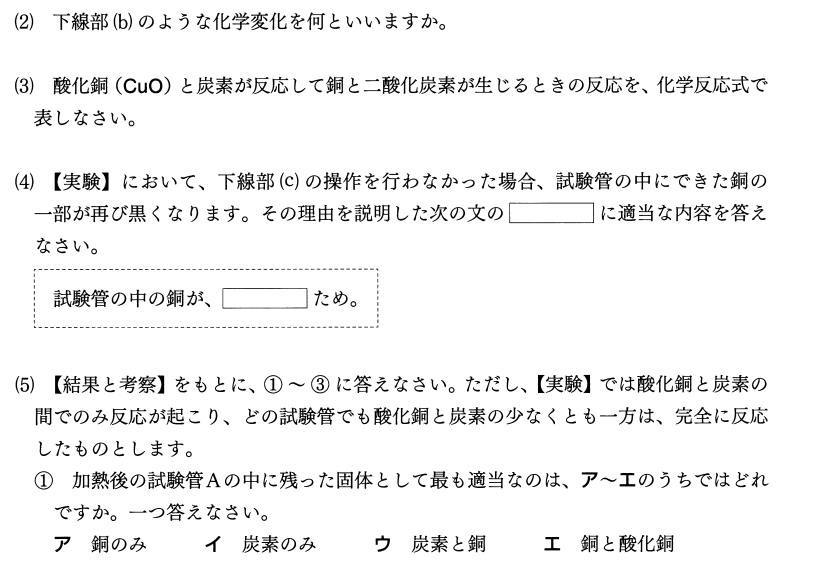 岡山県公立高校入試(理科) 大問4(2)(3)(4)(5)①