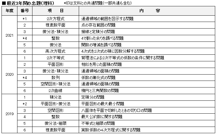 今年も場合の数・確率は出題された。微分法や整数も毎年のように出題されるので、理科と同様の力はつけたい。また、正しく論証を行う力や確実に解き切るだけの計算力を、日ごろからつけておくことも必要である