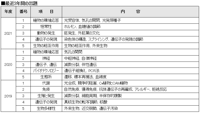大問5は『生物の相互作用』に関する問題であった。外来生物についても問われた。論述問題が5問出題されたが字数は少なく、いずれも標準的な内容であった。
