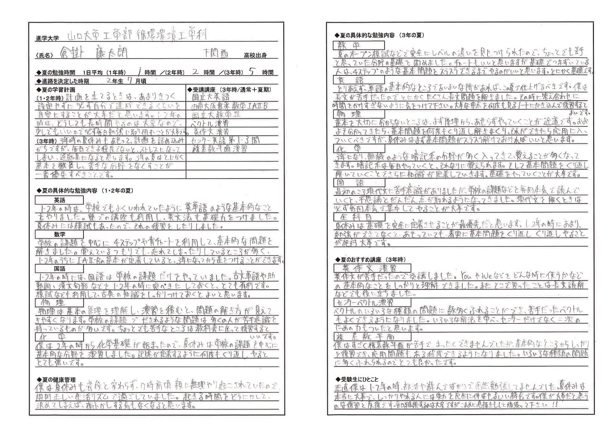 山口大学工学部 現役合格者[下関西高校出身]真夏の勉強法
