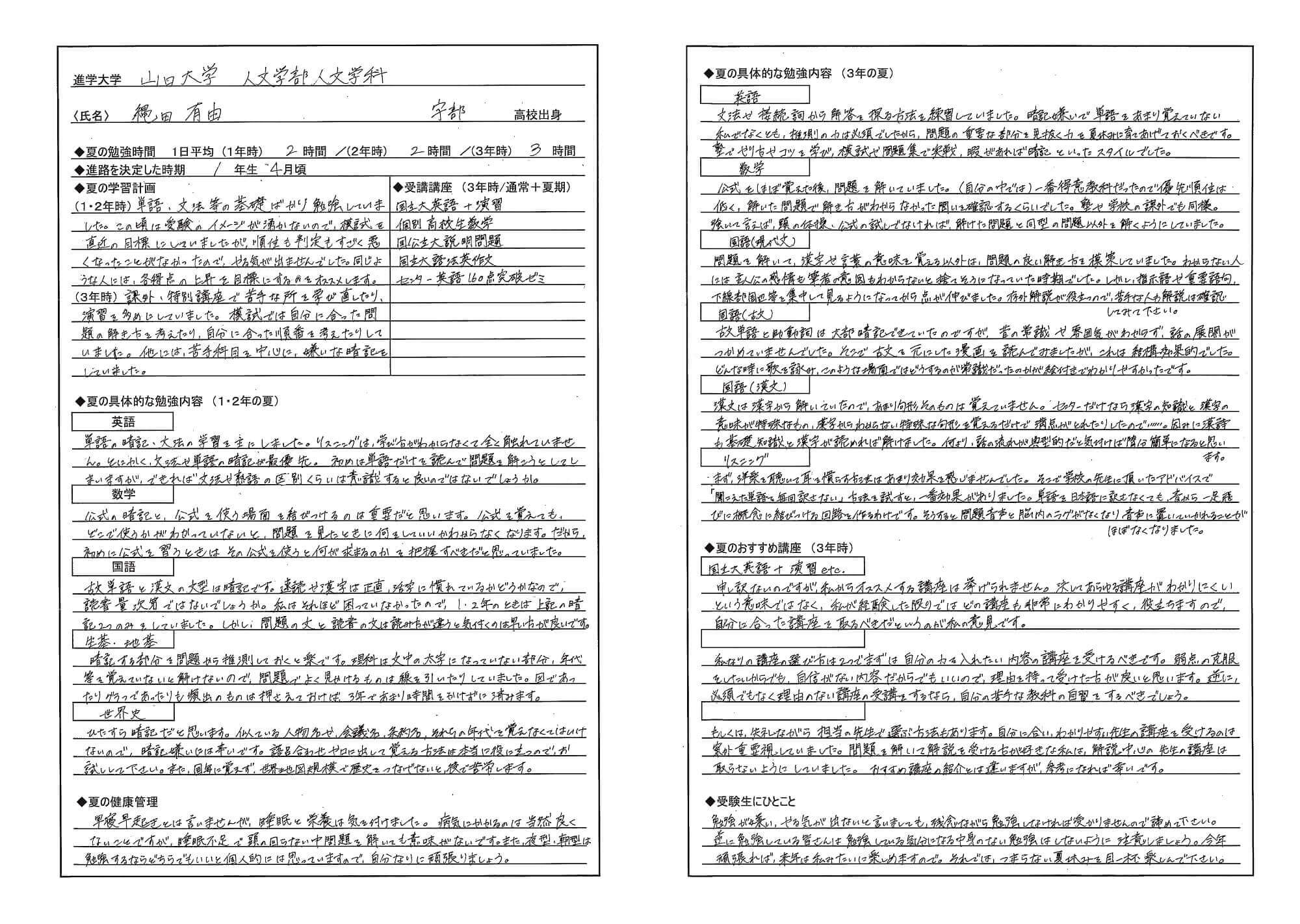 山口大学人文学部 現役合格者[宇部高校出身]真夏の勉強法
